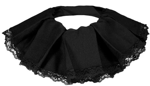 Een zwarte Zwarte Pietenkraag, gemaakt van trevira stof en afgewerkt met een kanten rand.