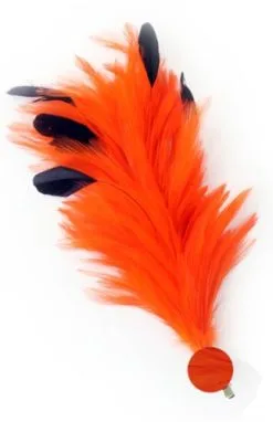 Mooie pluim oranje veren om jouw zwarte pieten baret mee te versieren! De verenpluim van ongeveer 30 centimeter lang beschikt over oranje veren en een paar zwarte veertjes. Doordat er in deze verenpluim ijzerdraad verwerkt zit, kan deze naar eigen smaak in model gebracht worden. Verder is de verenpluim makkelijk te bevestigen door middel van een clip en speld.