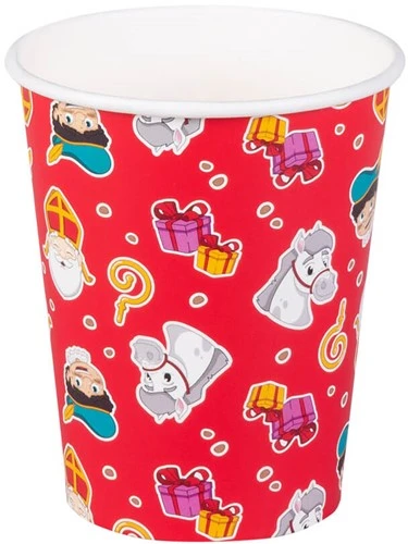 Opdruk: sinterklaas, roetveegpiet, paard, staf en cadeautjes