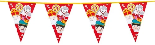 Opdruk: sinterklaas, roetveegpiet, paard, staf en cadeautjes