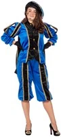 Mooi blauw zwarte pieten pak, van zeer goede kwaliteit. Het pak bestaat uit een bovenstuk met cape, broek en de baret. Ook te verkrijgen in een heren variant.