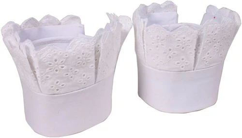 Een set van twee luxe manchetten om te gebruiken bij je Zwarte Pieten kostuum. Deze manchetten zijn om de mouw heen te vouwen en uitgerust met klittenband.